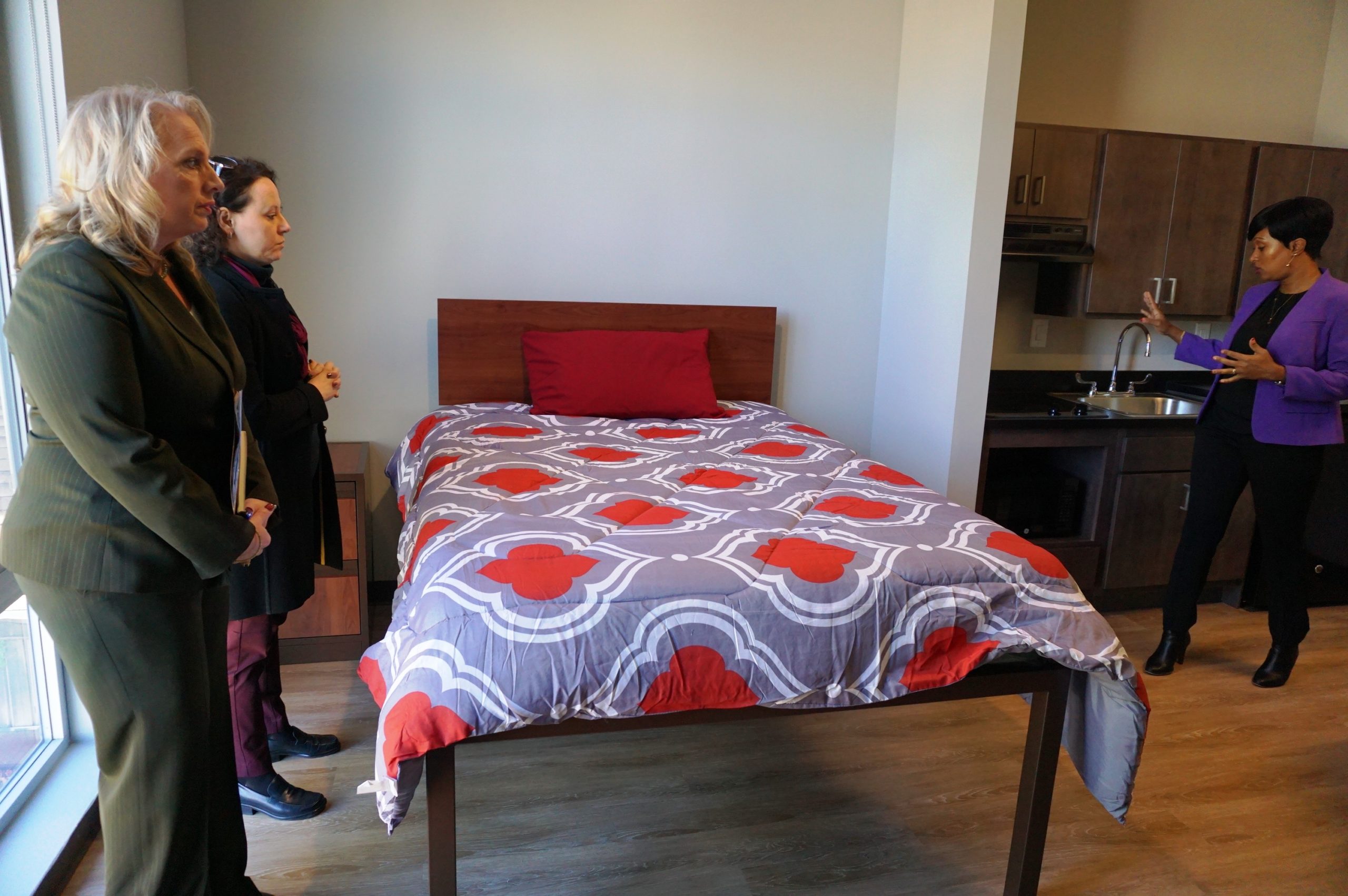 Red Stone Equity Partners Managing Director of Acquisitions Richard Roberts said the solution to homelessness is simple. “It is supportive housing. It is the bricks and mortar with the services on site. Not around the corner, not down the block, not downtown,” he said. “And if we muster the resources and the political will to commit more money, time and energy to projects like this, a problem which harms so many people could be solved.”