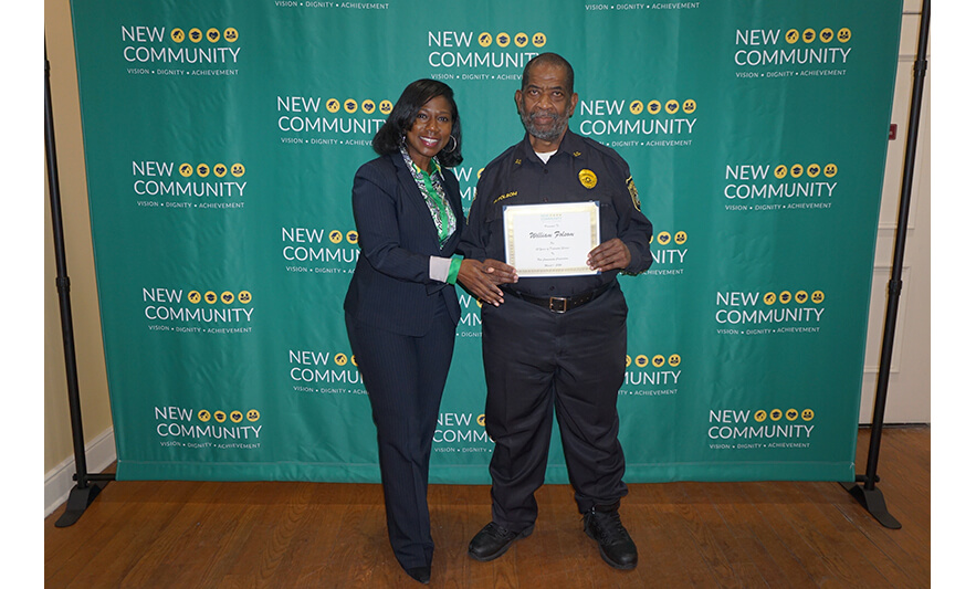 “Today, we want to say a loud thank you for all that you do. Thank you for touching the lives of our people. Thank you for making New Community look good,” she said. “We’re saying it loud and we’re saying it for the people in the back.”