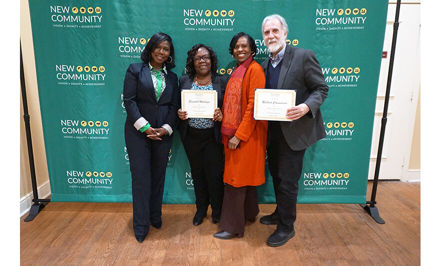“They make the wheels turn. Linda, thank you for all your service and your help day in and day out. Without you, a piece would be missing. Bryant, you’re a pillar here,” he said. “Linda, Bryant, thank you from the bottom of my heart and from New Community, the Executive Team, Board and all of your peers.”
