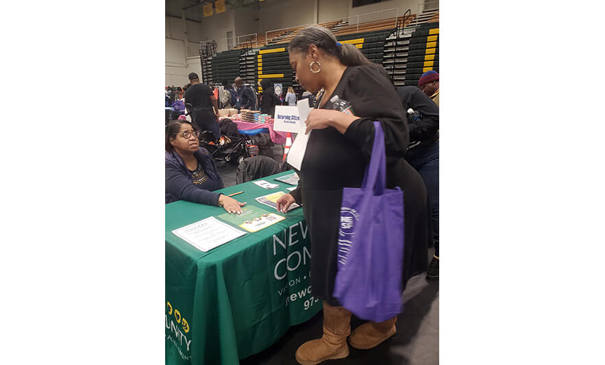 Quajen Coates shows off his offer letter from University Hospital alongside New Community Career & Technical Institute Patient Care Technician Instructor Dr. Maha Koltowski. Coates works full-time as a Patient Care Technician at the hospital.