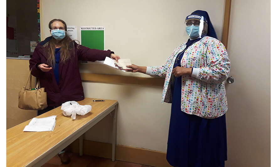 Harmony House Early Learning Center (HHELC) Director Sister Maurice Liguori Okoroji accepted monetary donations from Dr. Kathleen Sternas, an associate professor at the Seton Hall University College of Nursing, to…