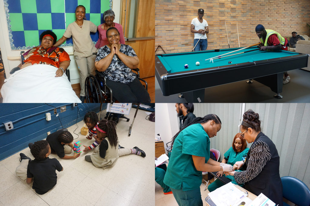 NCC offers more than just a roof over the heads of the people living in its more than 1,800 housing units. Resident Services staff members connect individuals and families to appropriate services, including the Emergency Food Pantry, the Family Resource Success Center and Family Service Bureau of Newark (FSB). Staff members also inform residents in need about New Community Extended Care Facility, where they can go for short-term rehabilitation or long-term stays.